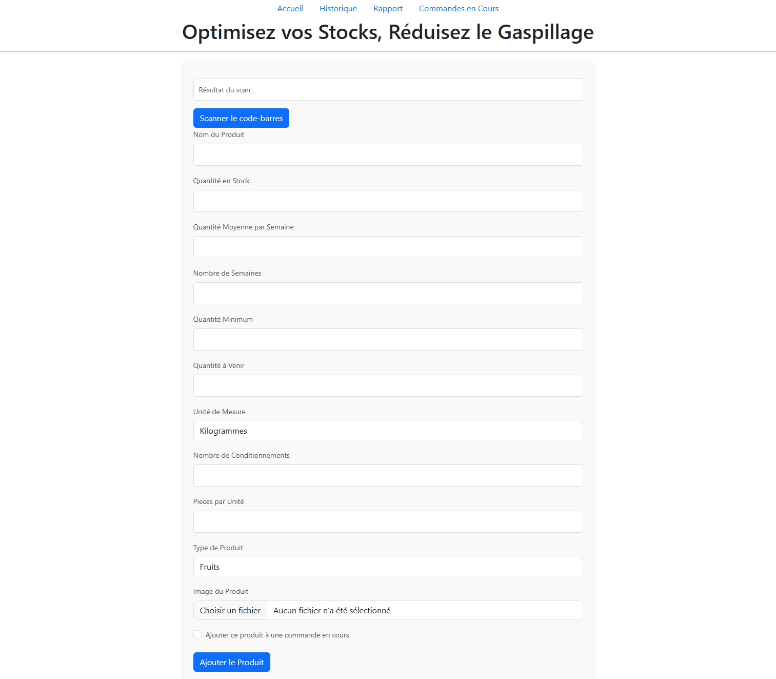 Permet aux utilisateurs de gérer facilement les données de stock, d’entrer les paramètres de prévision, et de consulter les rapports générés.